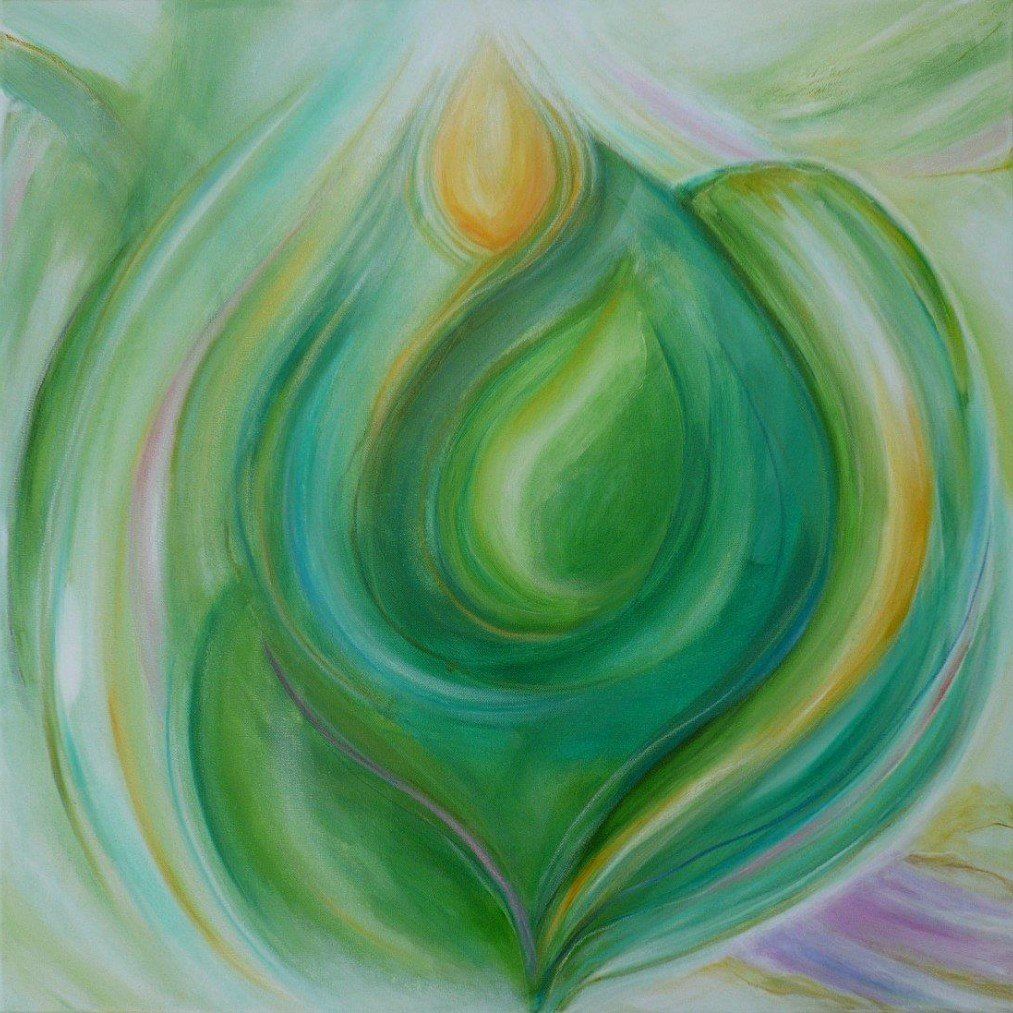 Ute Sorgalla was born in 1969 in Cologne. Painting has been her passion since early childhood. After training in an advertising agency, she studied graphic design in Krefeld and during this time began to open up to spirituality. Her powerful and light-filled works touch the soul and give an insight into a world that escapes our eyes in everyday life. The messages of these world messages of the angels for the humans are often given in the form of pictures, which show processes in the nature, which everyone can transfer on themselves and which are very associative. Among other things, these symbols are inspiration for Ute's compositions. The pictures are made of acrylic paints and watercolor chalks as well as oil pastels on canvas, which she applies in many translucent layers. This creates opalescent surfaces and chalk lines. These enter into dialogue and produce plant-like structures or shimmering contours, so that each picture creates an individual process. The artist uses a lot of white and never black, because she wants to express that ultimately everything consists of light and vibration.